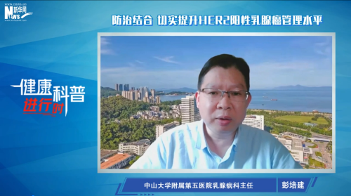 据了解,乳腺癌分为4种亚型:Luminal A、Luminal B、HER2阳性和三阴性乳腺癌。其中HER2阳性乳腺癌约占所有乳腺癌病例的20%-25%,因其预后差的特点,一度被称为“最凶险的乳腺癌”。面对HER2阳性乳腺癌应该如何预防和治疗?如何提升HER2阳性乳腺癌管理水平?中山大学附属第五医院乳腺病科主任彭培建教授做客新华网《健康科普进行时》进行作答。